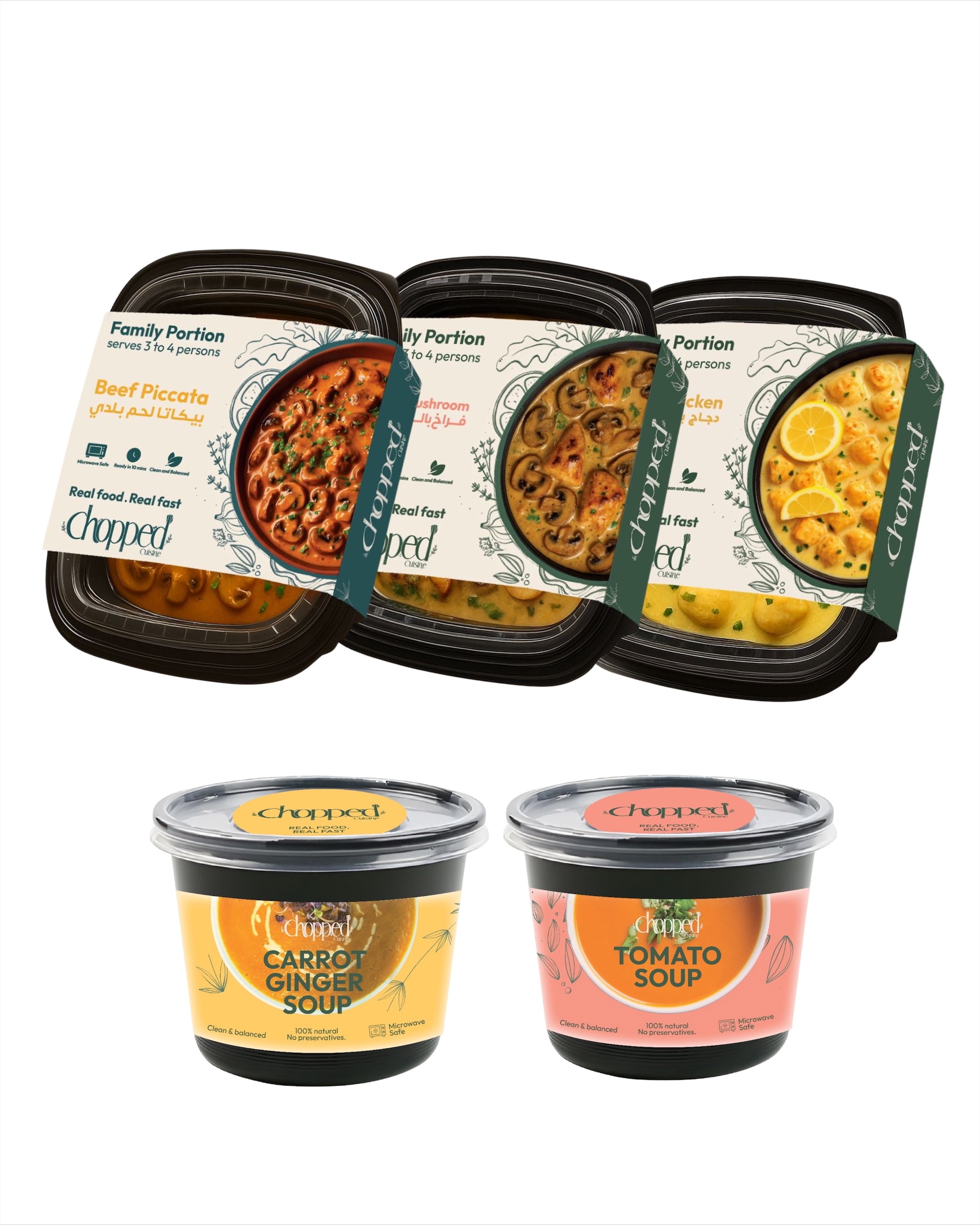 Family beef picatta,Family chicken mushroom ,Family lemon chicken,Ginger carrot soup,Tomato soup